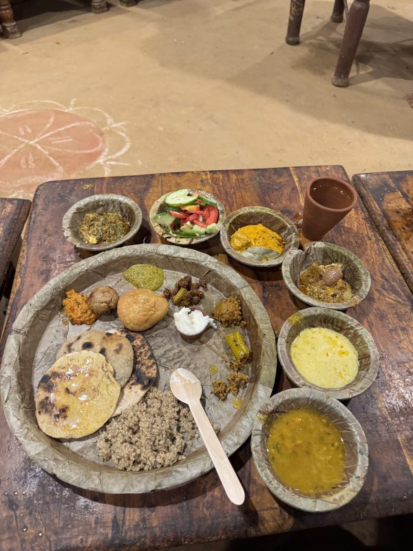 在齋浦爾吃到的當地料理,所用的餐具非常特別/本文作者提供